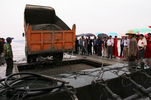 由公司承建的金昌機場停機坪工程按4C標準設(shè)計,站坪機位4個(2B2C),總面積2.65萬平方米,可供波音737和空客320等機型的起降。該項工程自2009年10月進場,公司金昌機場項目部全體人員在高溫酷暑、大風揚沙等惡劣氣候條件下,克服種種困難,通過改進施工工藝、調(diào)整作業(yè)時間等措施,順利完成了基礎(chǔ)施工。項目部僅用了25個晝夜就完成停機坪2.65萬平方米混凝土道面工程施工。