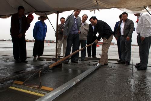 2010年8月20日上午10時,金昌機場飛行區(qū)停機坪混凝土道面工程順利封倉。甘肅省交通運輸廳、金昌市政府、甘肅機場建設(shè)投資管理公司、甘肅機場項目建設(shè)指揮部及施工單位等有關(guān)單位領(lǐng)導現(xiàn)場見證了道面工程順利封倉的時刻。