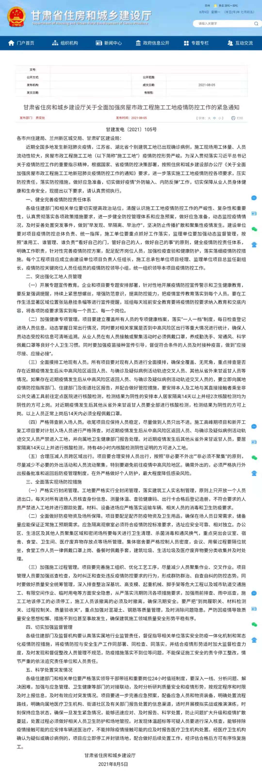 為深入貫徹落實(shí)習(xí)近平總書記關(guān)于疫情防控工作的重要指示精神,根據(jù)國(guó)家、省疫情防控決策部署,按照住房和城鄉(xiāng)建設(shè)部辦公廳《關(guān)于全面加強(qiáng)房屋市政工程施工工地新冠肺炎疫情防控工作的通知》要求,確保安全生產(chǎn)和正常施工生產(chǎn)秩序,現(xiàn)將《甘肅省住房和城鄉(xiāng)建設(shè)廳關(guān)于全面加強(qiáng)房屋市政工程施工工地疫情防控工作的緊急通知》轉(zhuǎn)發(fā)給你們,請(qǐng)各單位遵照?qǐng)?zhí)行。