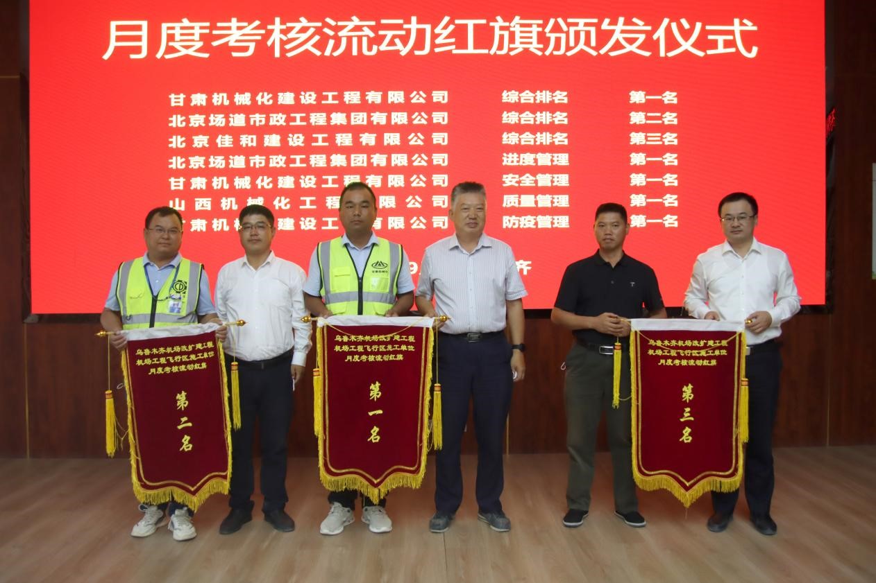 此次會(huì)議對(duì)施工單位八月份的相關(guān)工作進(jìn)行了綜合考核,我司烏魯木齊機(jī)場(chǎng)項(xiàng)目經(jīng)理部在8家施工單位評(píng)比中獲得綜合第一名、安全第一名、防疫第一名的好成績(jī),得到了業(yè)主方、擴(kuò)建指揮部及監(jiān)理單位的一致認(rèn)可。同時(shí)會(huì)議對(duì)九月份全場(chǎng)飛行區(qū)工程的相關(guān)工作進(jìn)行了部署,下達(dá)了各標(biāo)段施工任務(wù)。