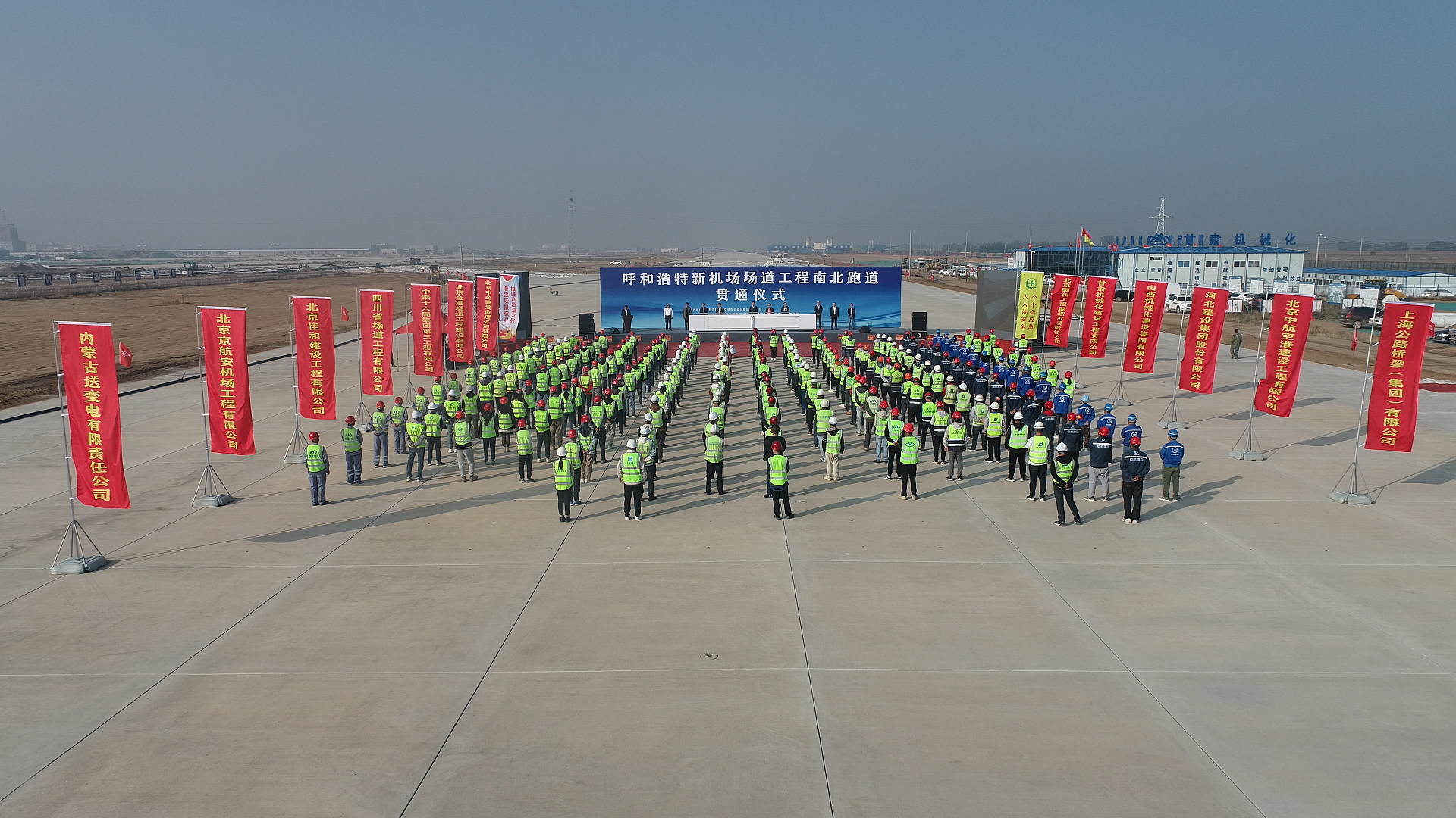 9月26日,呼和浩特新機(jī)場(chǎng)場(chǎng)道工程南北跑道貫通儀式在呼和浩特新機(jī)場(chǎng)施工現(xiàn)場(chǎng)舉行。公司黨委書記參加貫通儀式并代表飛行區(qū)場(chǎng)道施工單位致詞。
