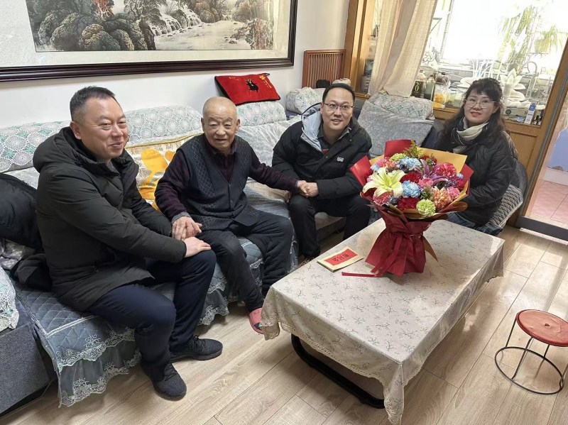 新春佳節(jié)將至,2月6日,西固區(qū)非公有制經濟組織黨委委員丁輝同志與公司黨委書記一行,專程走訪慰問公司97歲高齡的建國前黨員張升元,為老人送去黨和政府的關懷溫暖與節(jié)日美好祝福。